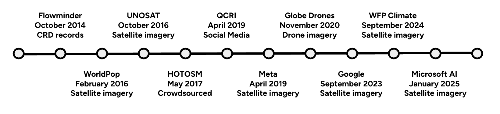 Novel data sources can provide important proxies in data-limited contexts. When combined with traditional humanitarian data, such as needs assessments or displacement tracking, these sources can increase the resilience of the humanitarian data ecosystem. For example, in response to the March 2025 Myanmar earthquake, Microsoft AI for Good Lab provided data on building damage before access to affected areas was possible. In other cases, Meta’s high-resolution population density maps have been used to estimate the number of people living within a 30-metre grid and their demographics, helping organisations identify people in need.